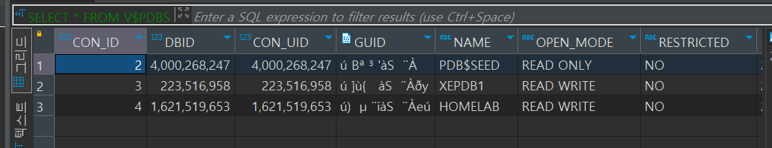 oracle-21-xe | Completed: CREATE pluggable DATABASE "homelab" admin USER "pdbadmin" IDENTIFIED BY *