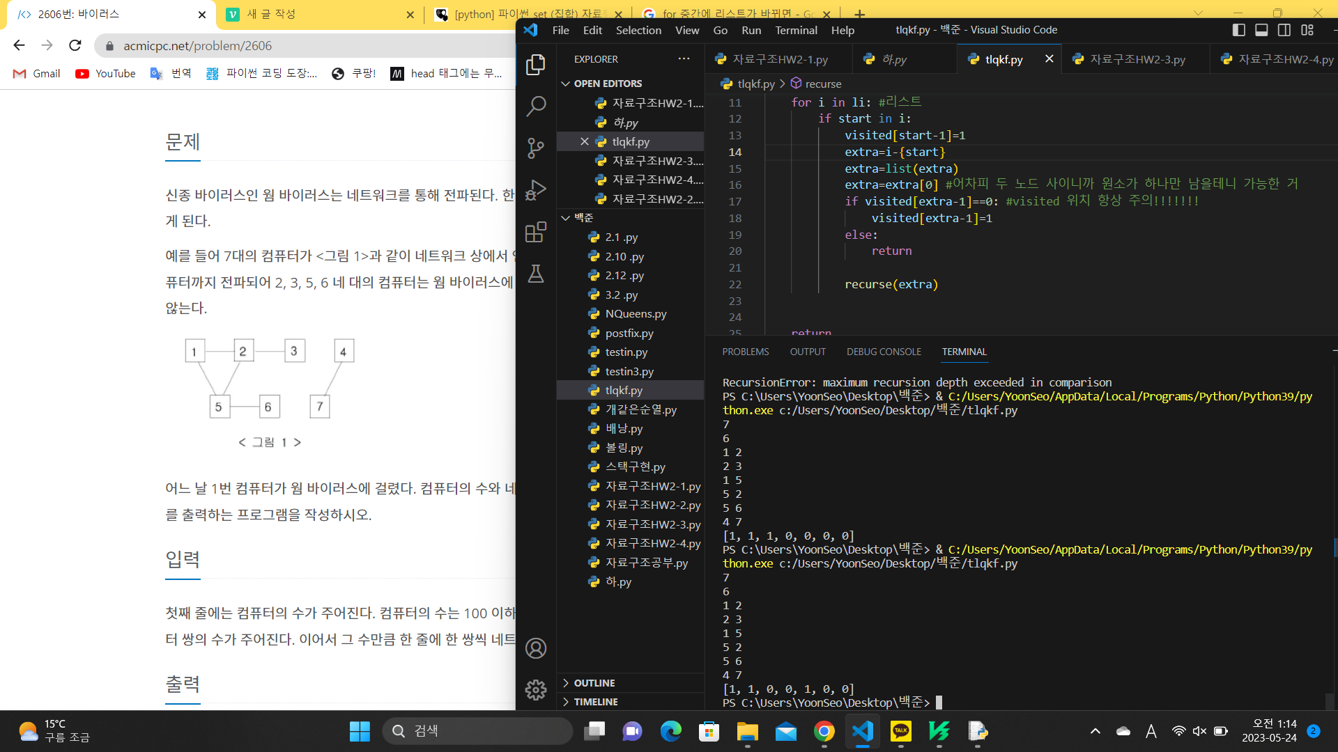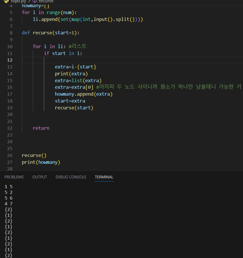 visit 안 했을 때만 recurse해야지 다 해버리면 1 2에서만 빙글빙글 돌잖아!!!!!!!!!!!!!!!!!!!