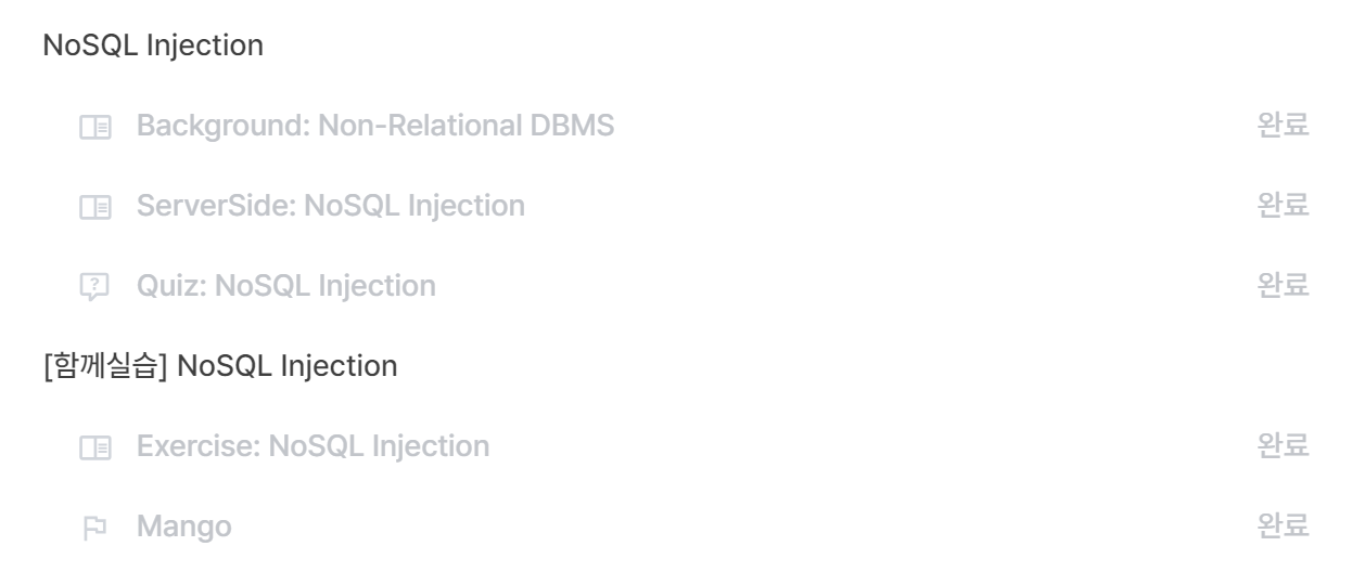 이전에 학습한 SQL Injection은 SQL을 이해하고 있다면 모든 RDBMS에 대해 공격을 수행할 수 있다 그러나 NoSQL은 사용하는 DBMS에 따라 요청 방식과 구조가 다르기 때문에 각각의 DBMS에 대해 이해하고 있어야 한다