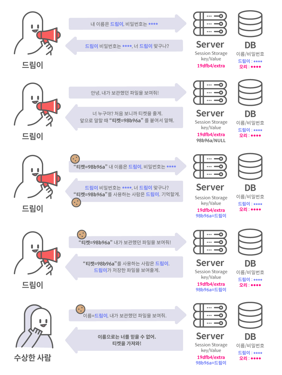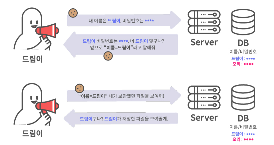이 덕분에 우리는 포털 사이트, SNS와 같은 웹 서비스에 한 번 로그인한 후 일정 기간은 로그인하지 않고도 바로 서비스를 사용할 수 있다