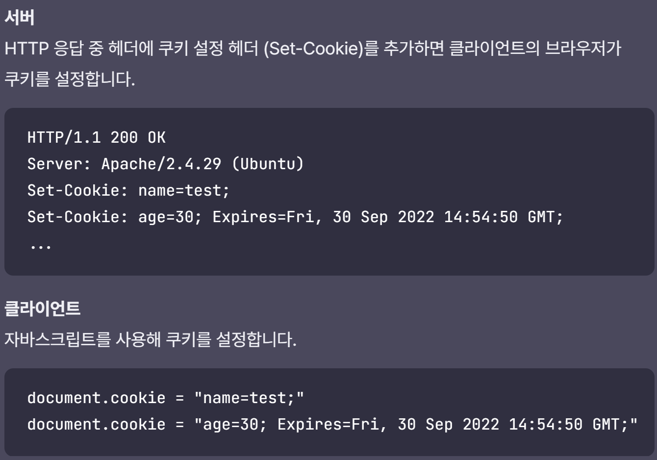 쿠키는 서버와 클라이언트 둘 다 설정할 수 있습니다.