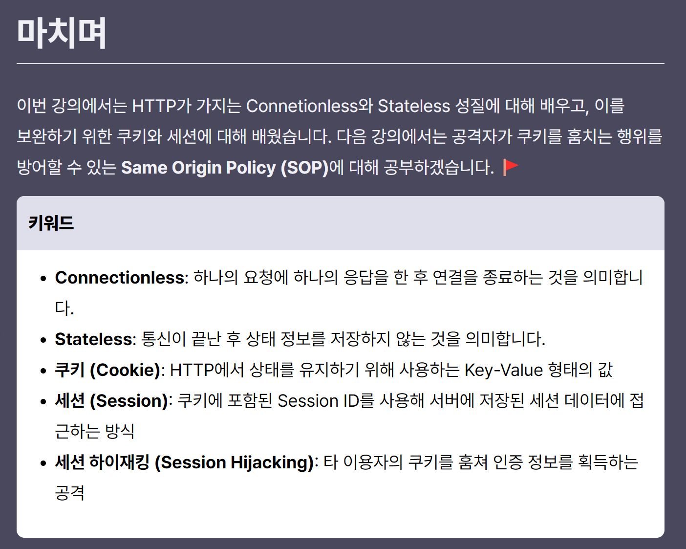 브라우저는 해당 키를 쿠키에 저장하고 이후에 HTTP 요청을 보낼 때 사용