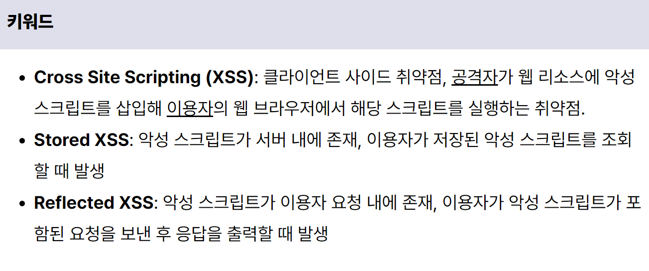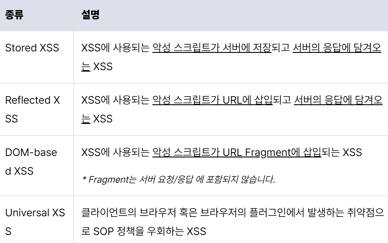 공격자가 웹 리소스에 악성 스크립트를 삽입해 이용자의 웹 브라우저에서 해당 스크립트를 실행할 수 있게 한다