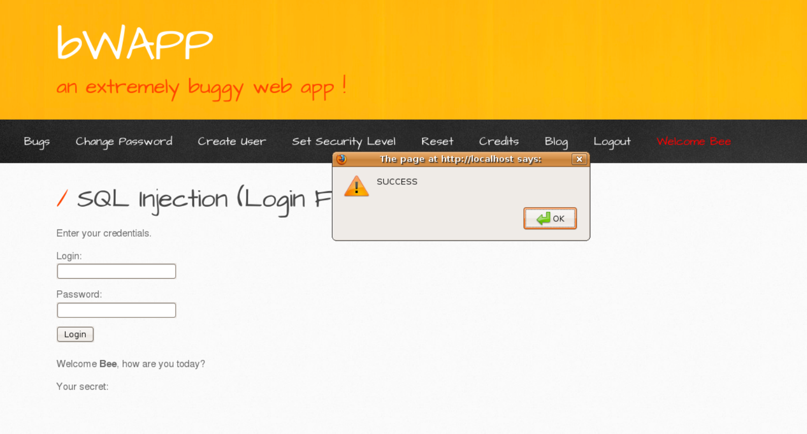 를 각자 입력하고 SQL Login user로 가서 로그인했을 떄 경고창이 뜬다