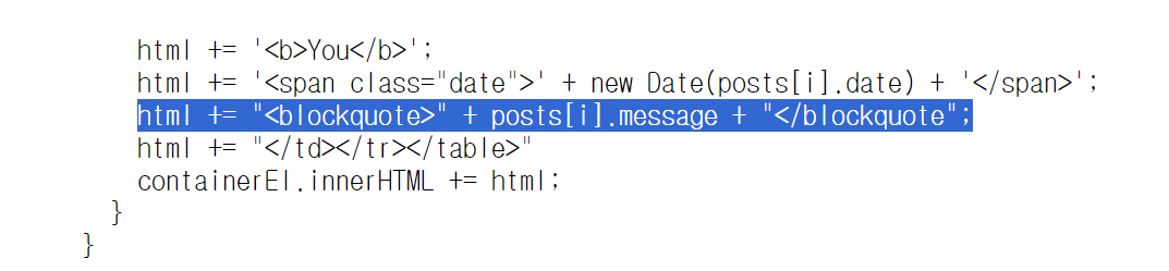 코드를 확인한 결과 blockquote 태그로 막혀있다