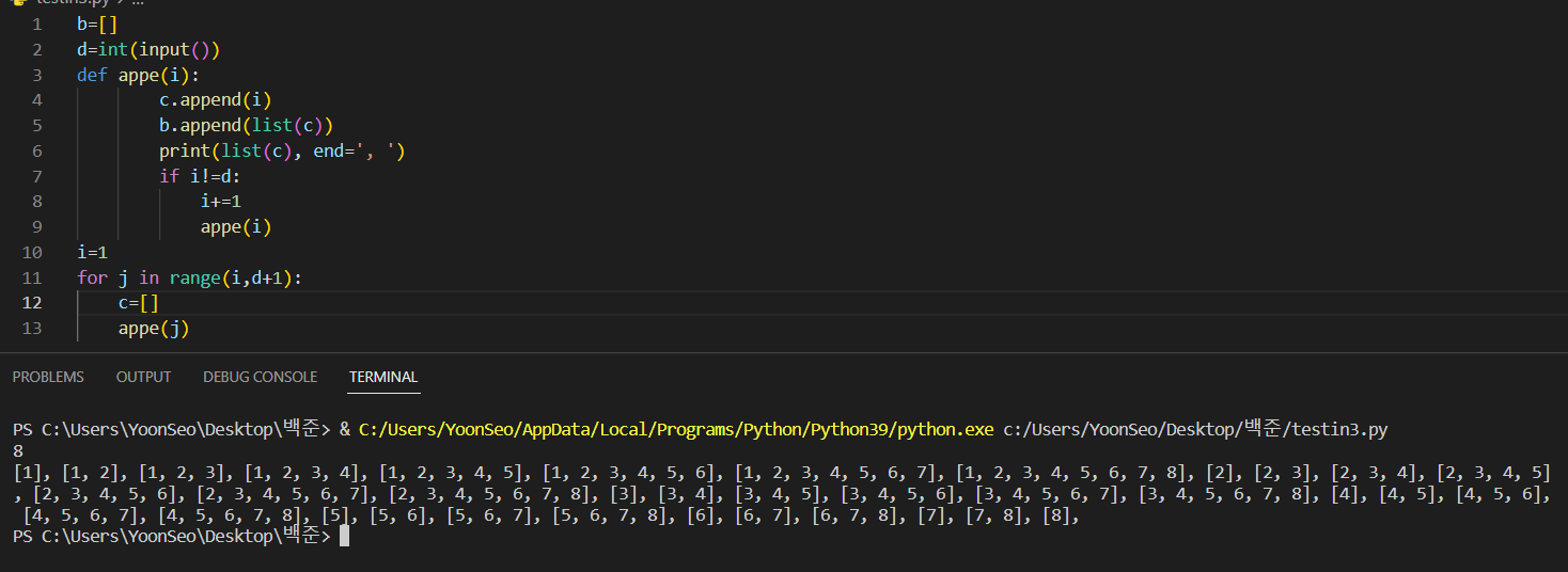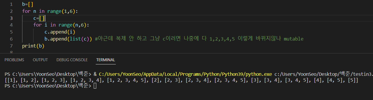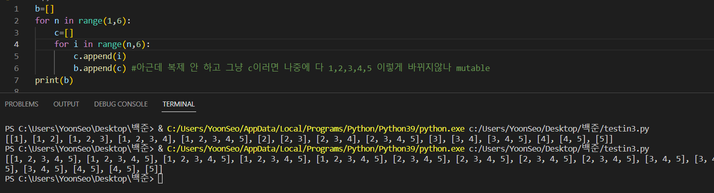 b.append(list(c)) #아근데 복제 안 하고 그냥 c이러면 나중에 다 1,2,3,4,5 이렇게 바뀌지않나 mutable