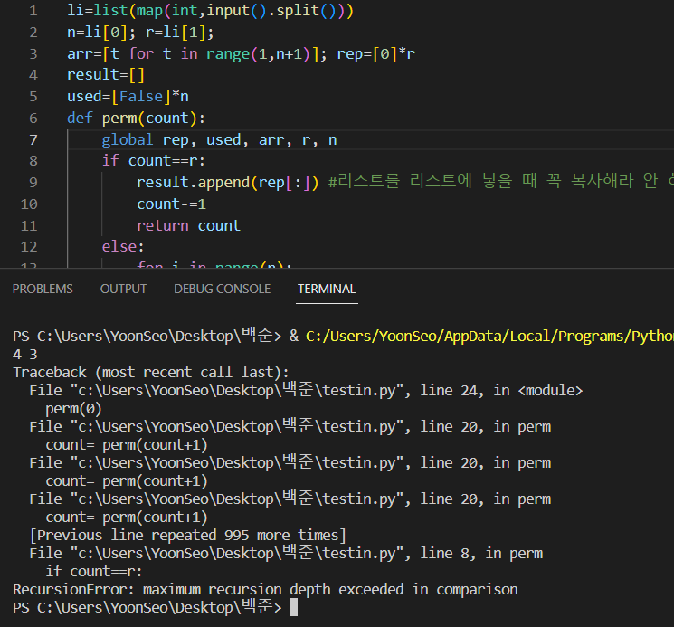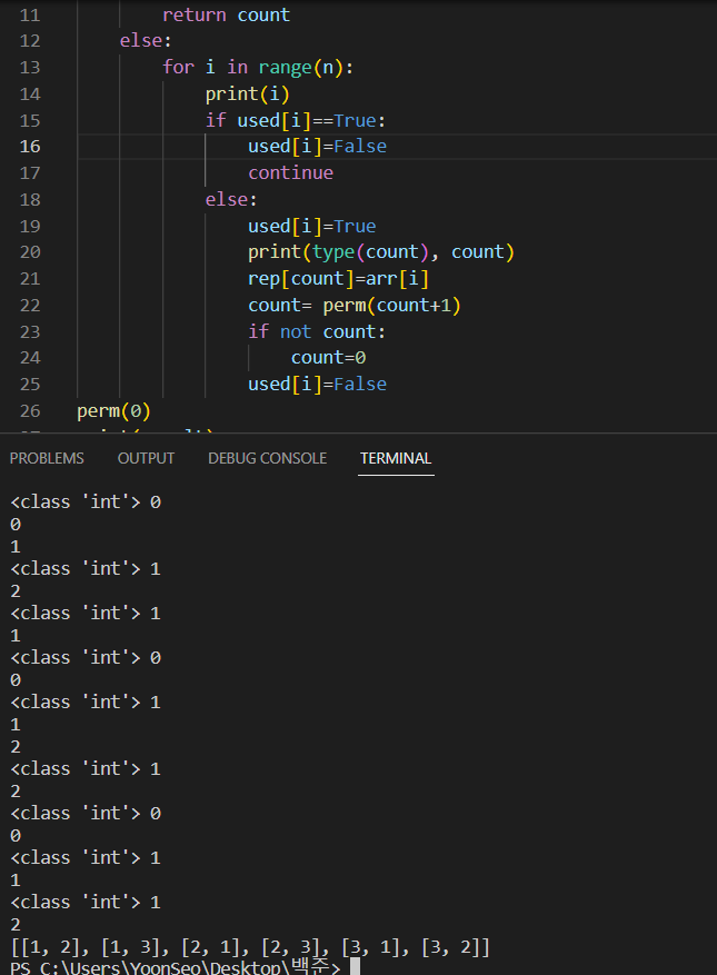 if visit[i]: continue # 이미 순열로 선택되었다면 통과