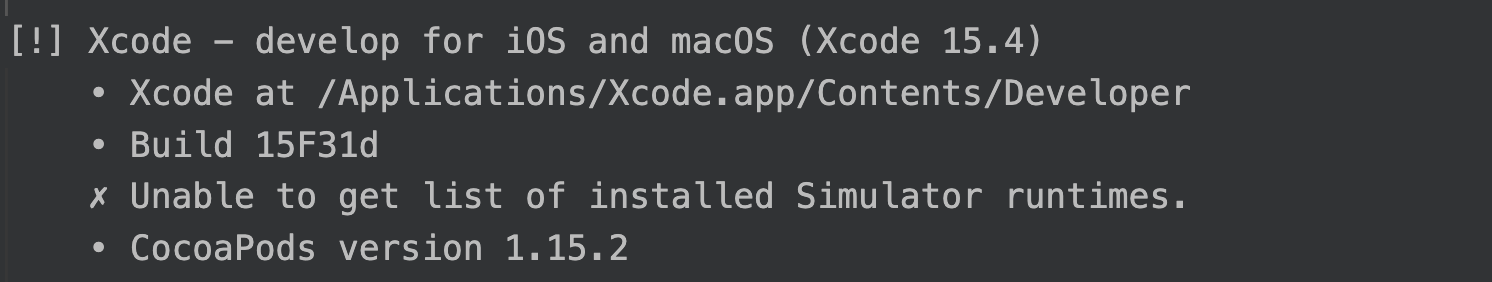 Unable to get list of installed Simulator runtimes.가 뜨는 경우, < 이 사이트 참고하기! >