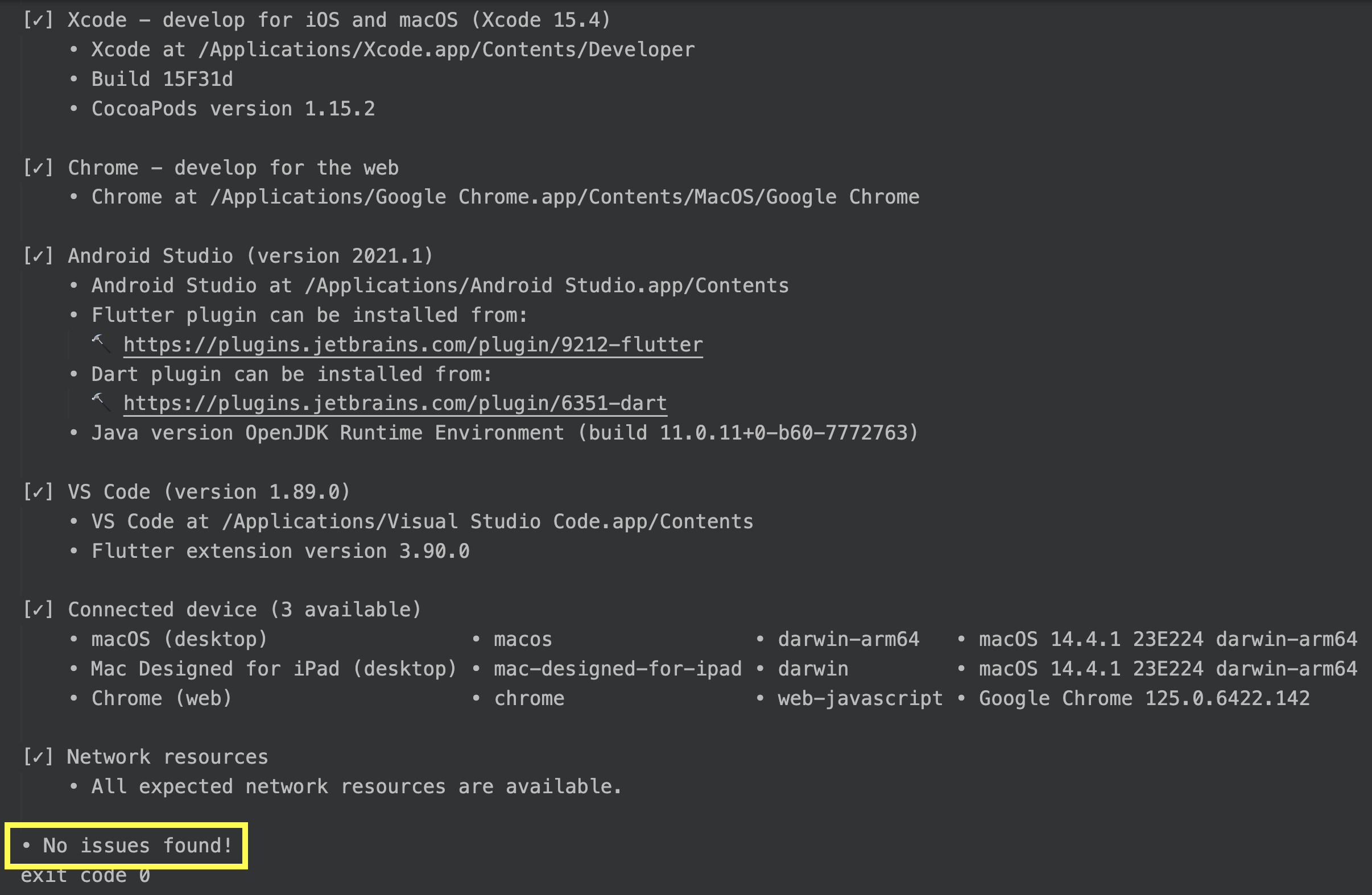 - 오류 해결되고, 다시 Flutter: Run Flutter Docter 하면 이렇게 바뀜!
