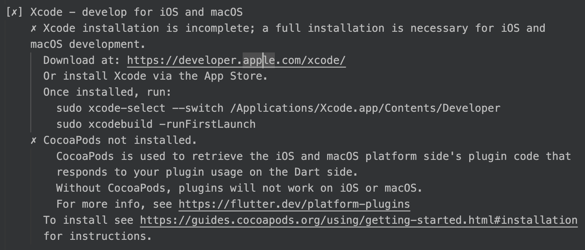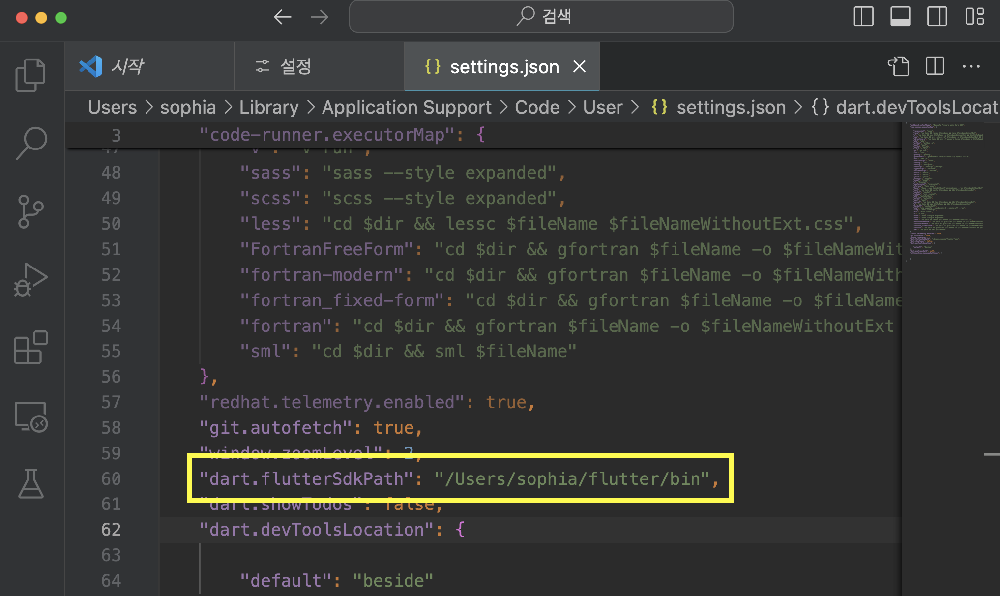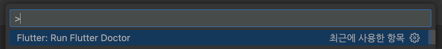Commend 창(MacOS 기준: command + shift + P)에서 Flutter: Run Flutter Docter 누르기