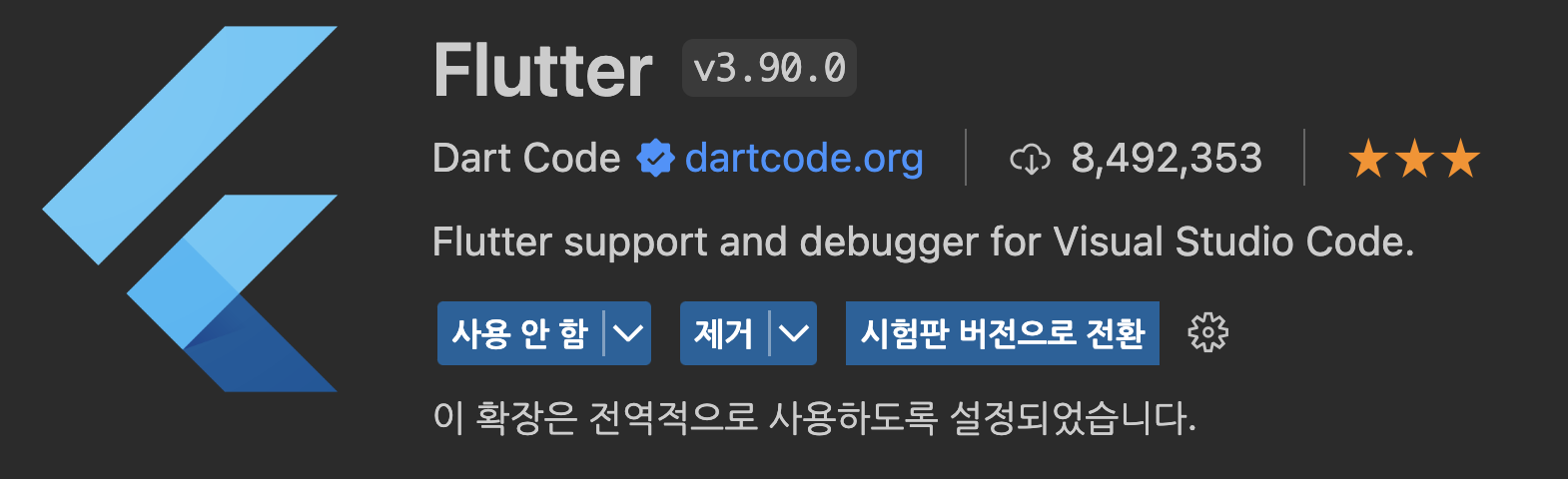 만약 바꿔도 [ x ] Flutter가 뜰 경우,