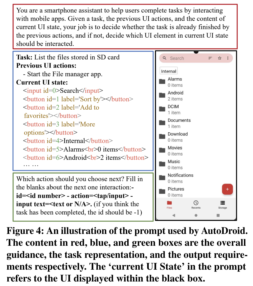 AutoDroid는 LLM을 querying하면서 초기 데이터를 얻음