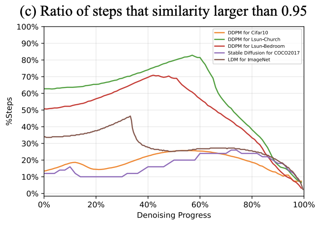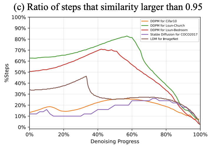 그래프에서보면 각 모델들마다 순차적으로 Denoising 하는 과정에서 서로 인접한 단계에서 생성된 이미지는 매우 유사한 구간이 존재함