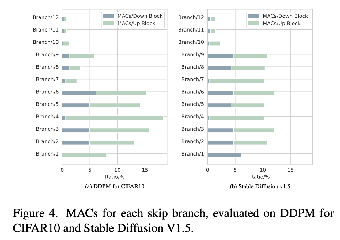 따라서, 연산량의 분포에 따라 DeepCache를 이용한 가속화 성능의 이점을 받을 수 있을지 없을지 결정됨
