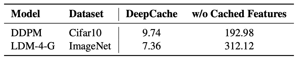 또 다행히 Diffusion Model에서 쓰이는 U-Net 구조가 구조상 각 Denoising step마다 High-level Feature들을 유지한 채로, Low-level Feature들만 업데이트해서 Cache 할 수 있음