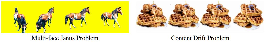 Content Drift Problem : 3D 객체를 생성할 때, 내용이 일관되지 않고 변화하거나 왜곡되기 때문에 다른 각도에서는 잘못된 결과물이 생성될 수 있음