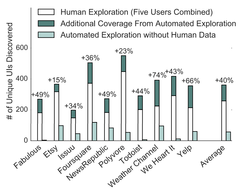 Human powered Exploration : 사용자가 직접 앱을 사용하면서 얻은 user interaction trace을 기록함