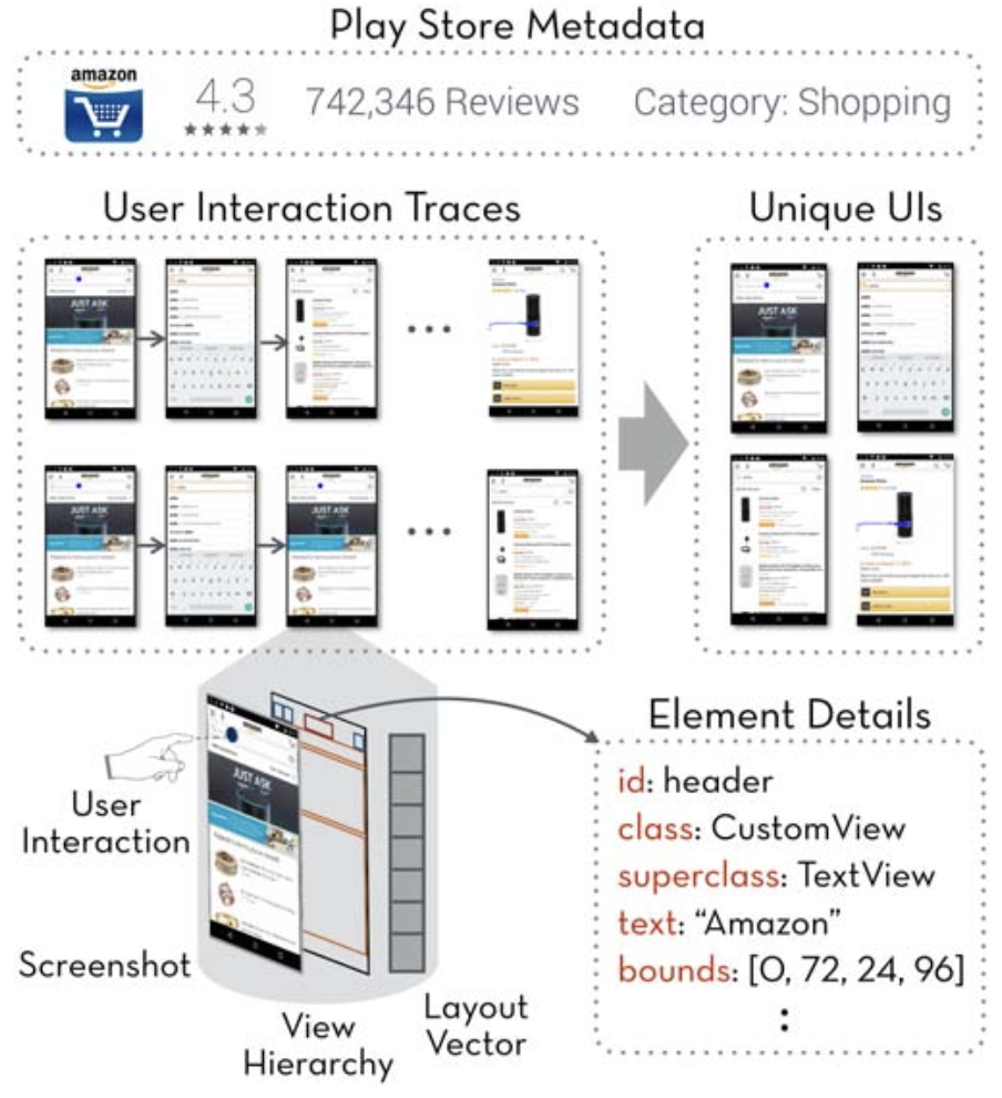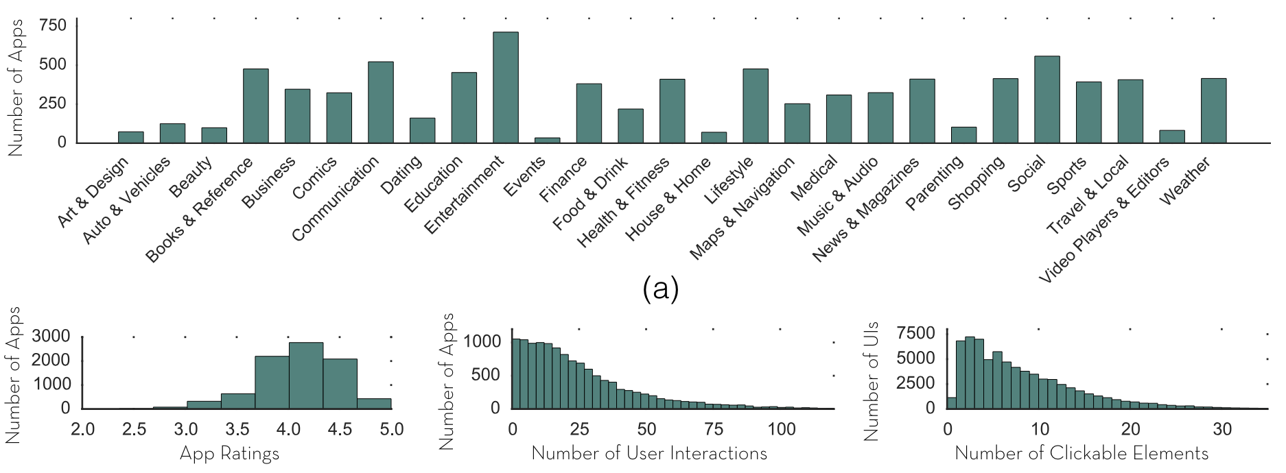 Google play store에서 9772개의 free app을 다운로드 받아서 13명의 worker들에게 사용하고 interaction trace data를 얻음