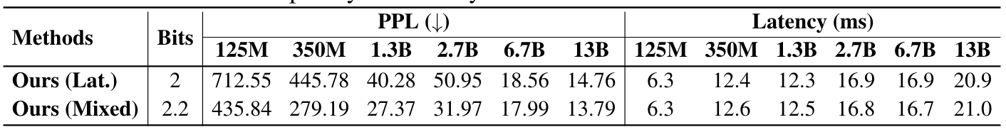 Mixed bit allocation strategy를 사용하고 말고를 실험했더니, 사용한 결과가 적은 perplexity로 latency를 줄여준다는 것을 확인했다.