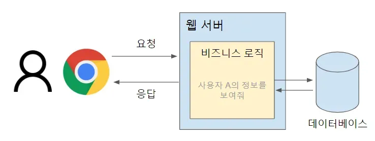 웹 서버는 클라이언트의 다양한 요청을(동적인 컨텐츠) 처리하기 위해 비즈니스 로직이라는 것을 미리 준비해두며, 웹 서버는 여러 개의 비즈니스 로직이 합쳐진 것이라고 이해하면 된다.