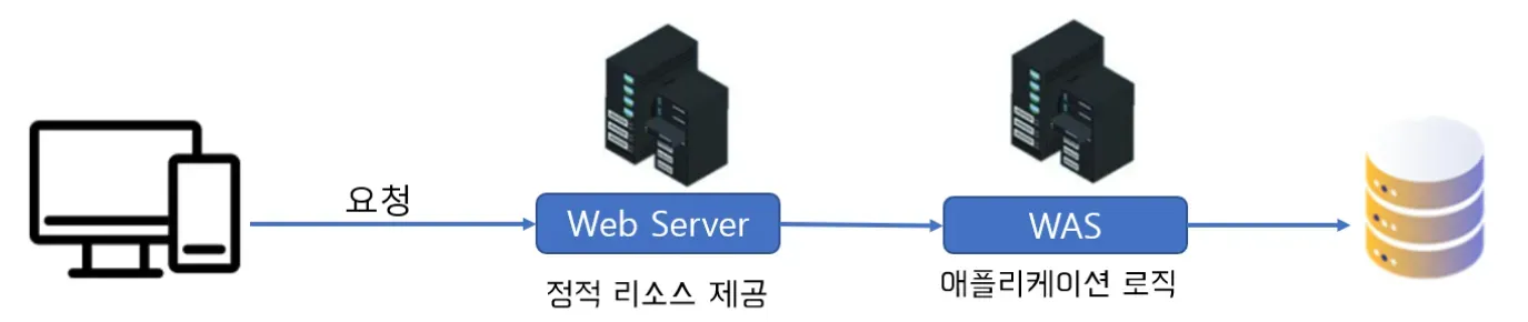 웹 서버를 동적인 컨텐츠, 정적인 컨첸츠를 처리하는 서버로 세분화 하면 Web Server는 정적인 컨텐츠를 처리하고, Web Application Server는 동적인 컨텐츠(비즈니스 로직)을 처리하는데 특화되어 있다.