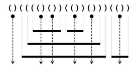 이러한 레이저와 쇠막대기의 배치는 다음과 같이 괄호를 이용하여 왼쪽부터 순서대로 표현할 수 있다.