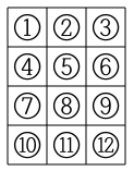# 3x4 격자: 1번부터 12번 칸의 좌표 (행, 열)