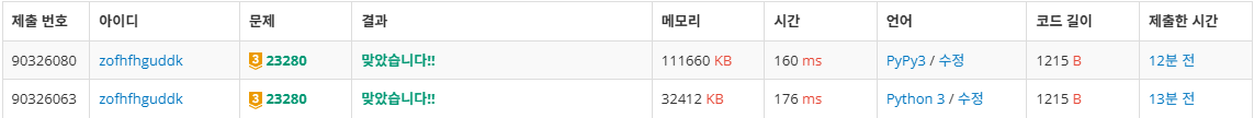 처음에는 어떻게 풀어야 할까 고민하다가, N이 10000개 뿐이고 상태가 12*12개 뿐이니까 dict로 풀어야겠다고 생각하였다.