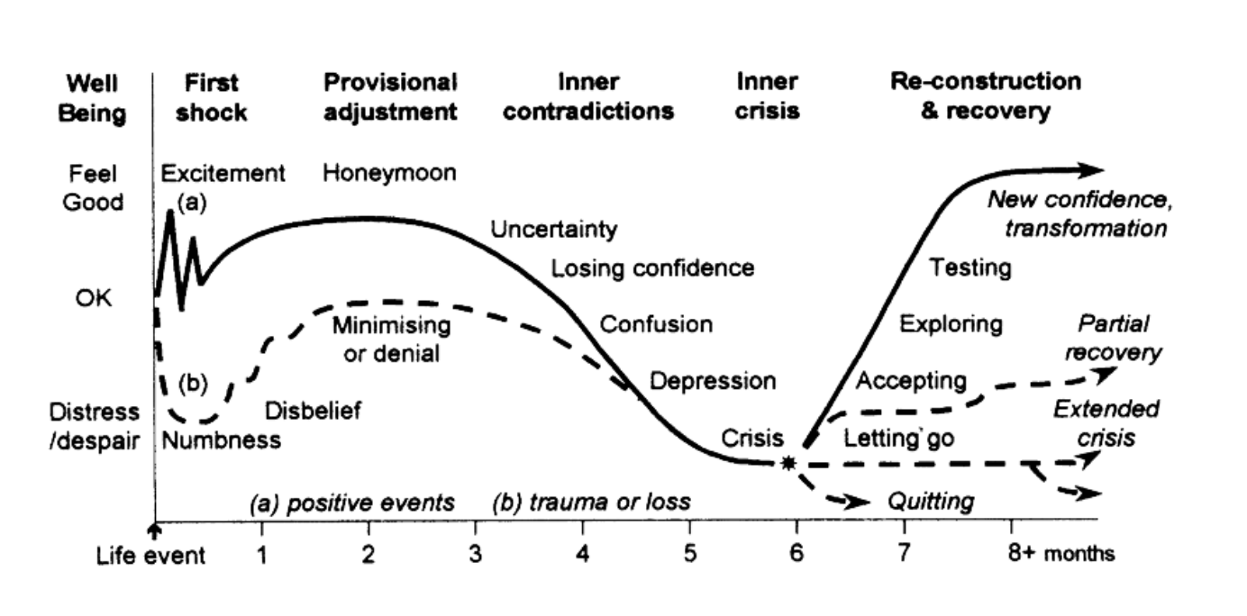 새로운 것을 배우는 동안에 거치게 되는 사이클에 따르면, 다음 3가지 동작 중 하나로 이어질 수 있기 때문에 "위기 모드"가 가장 중요하다.