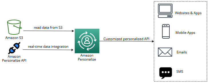 Personalize는 완전 머신 러닝 기반 서비스이며 이를 통해 실시간으로 맞춤형 추천을 하는 앱을 구축할 수 있다.