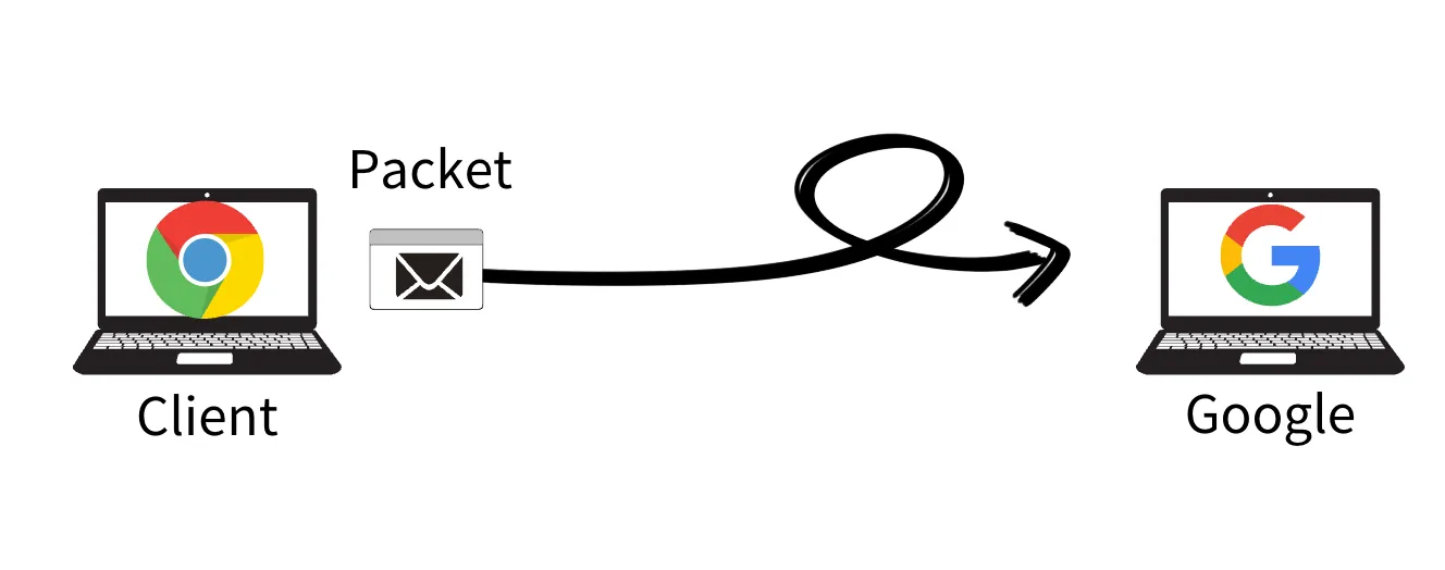 요청 패킷(HTTP 메세지 포함)을 구글 서버로 전송