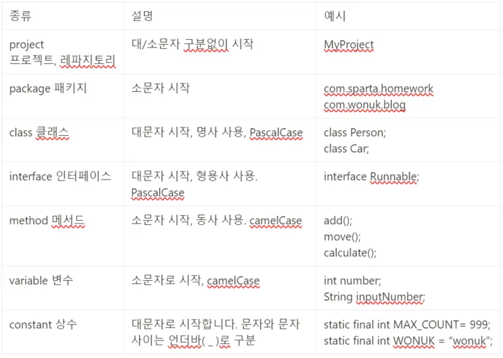 _ 언더바로 이어줌. 모든 단어는 소문자나 대문자- 대시로 이어줌. 모든 단어는 소문자📌 Java의 명명법