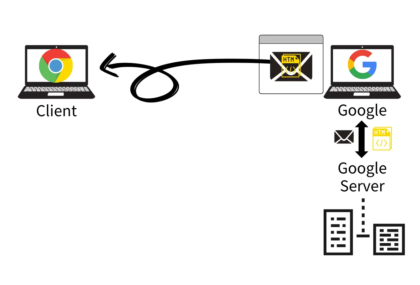 구글 서버에서 HTTP 요청 메세지를 기반으로 응답 HTTP 메세지를 만들어 응답