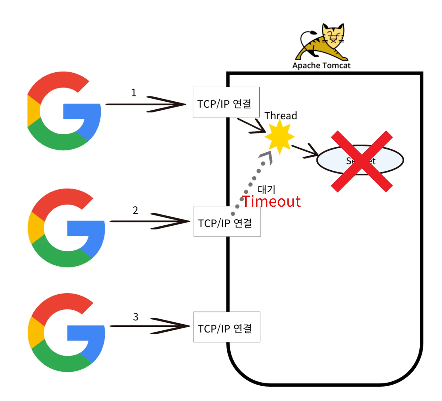 첫번째 요청 작업 지연이나 Error 발생시 → 모든 요청이 Time out 오류 발생