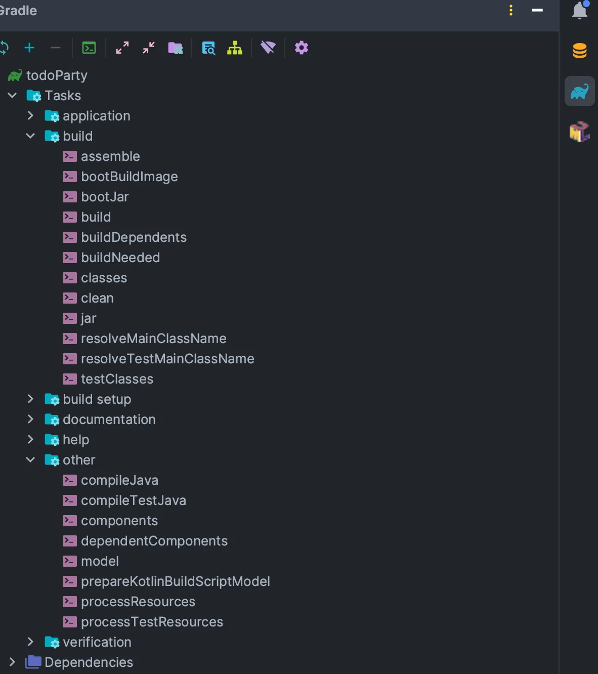 spring-boot-starter-web을 빌드 관리 도구에 추가시 필요한 모든 종속성과 설정 자동구성100%는 아님📚 Java와 유사한 문법 구조를 가진 Groovy기반의 스크립트 언어를 사용하며 다양한 소프트웨어를 빌드(Build)할 수 있는 유연한 빌드 자동화 도구.