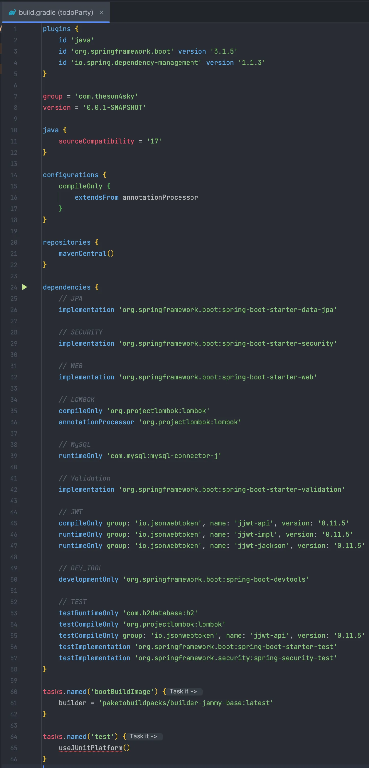 testImplementation 'org.springframework.boot:spring-boot-starter-test'