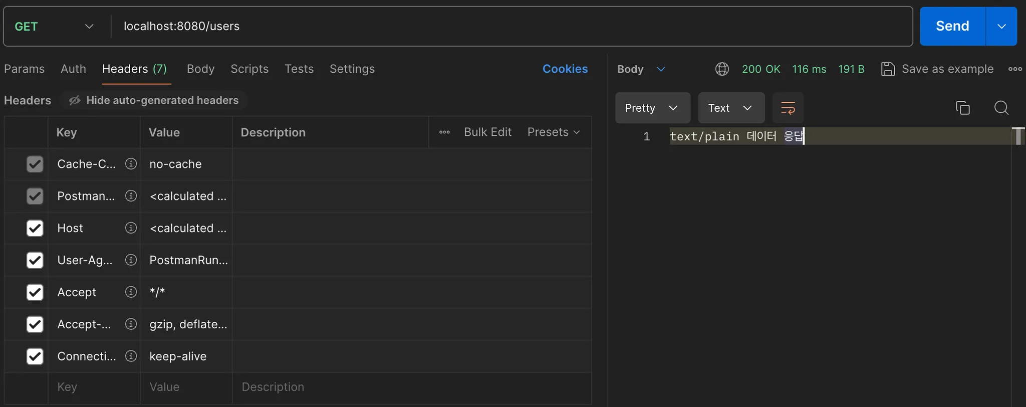 String result = "text/plain 데이터 응답";