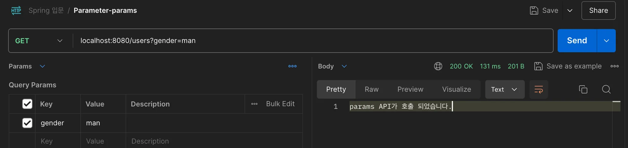 - 실제 URL GET `http://localhost:8080/users**?gender=man**` 파라미터가 있어야 호출된다.