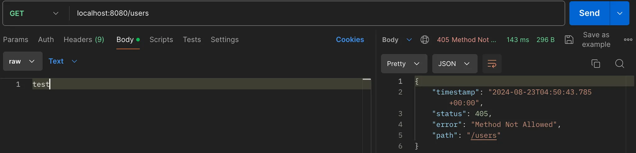 - HTTP 응답 상태코드 405(Client측 에러), Method Not Allowed Exception 반환