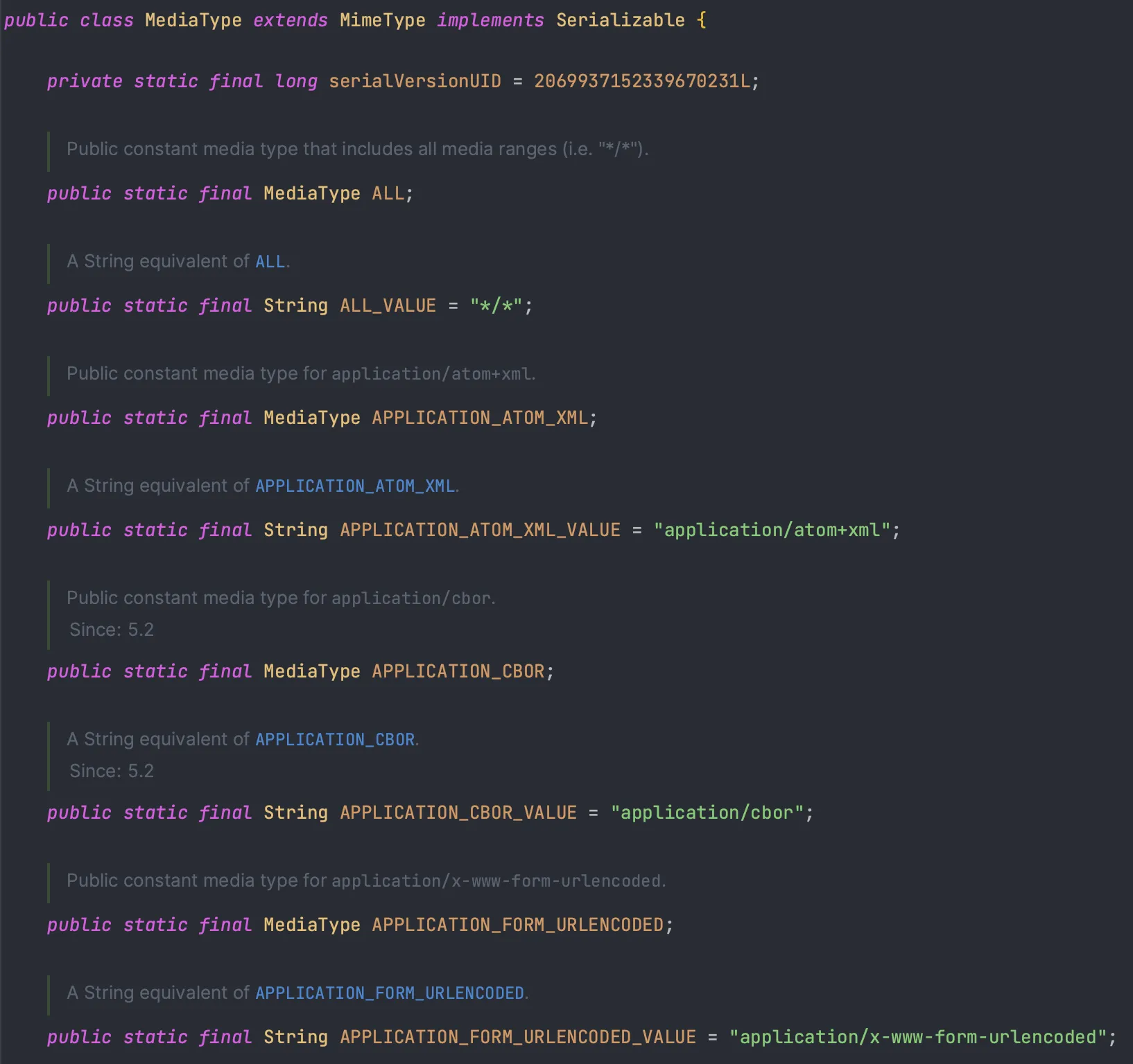 위에 나온 모든 MediaType은 Spring이 제공하는 Enum을 사용하면 된다.