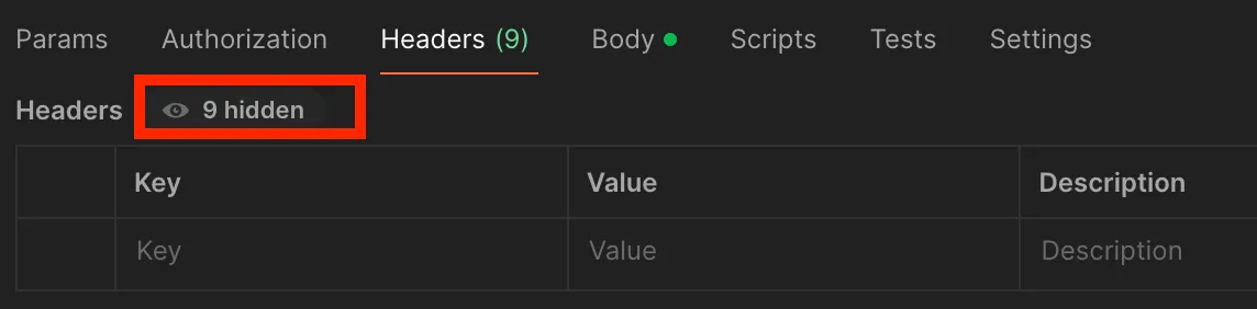 - Postman → Headers → hidden