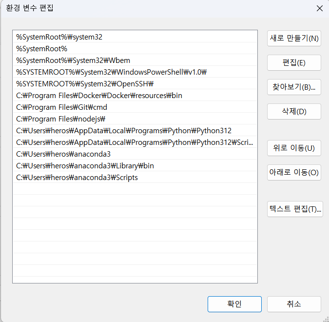 그러면 저거 뜰 겁니다. 환경 변수 누르고 시스템 변수에 Path를 눌러주면 됩니다.