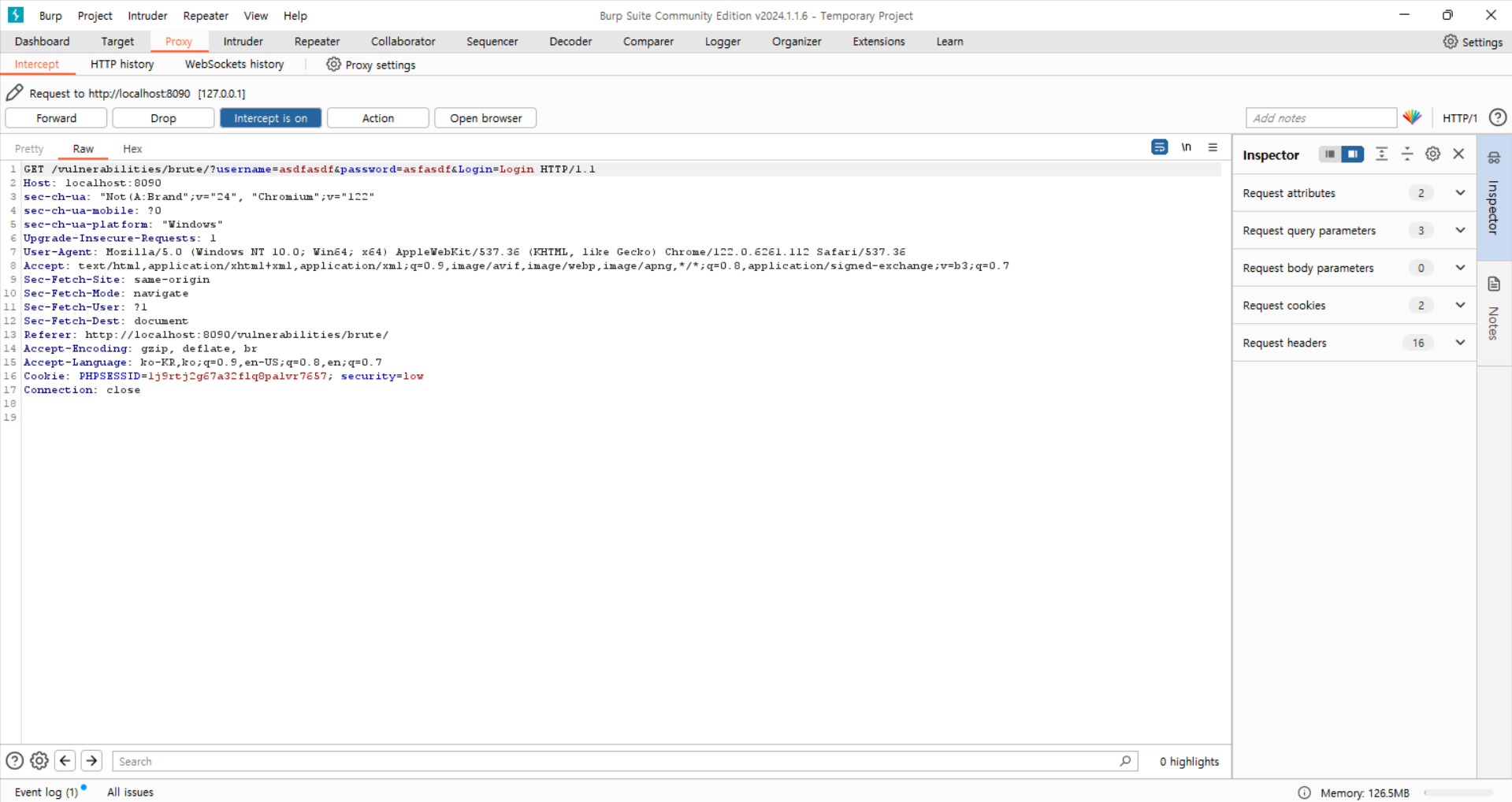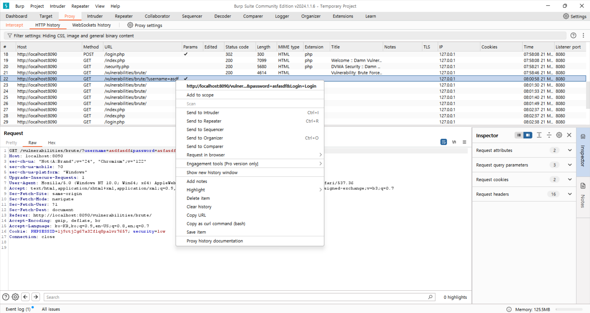 Burp Suite를 통해 브루트 포스 공격을 연습해 볼 수 있습니다.