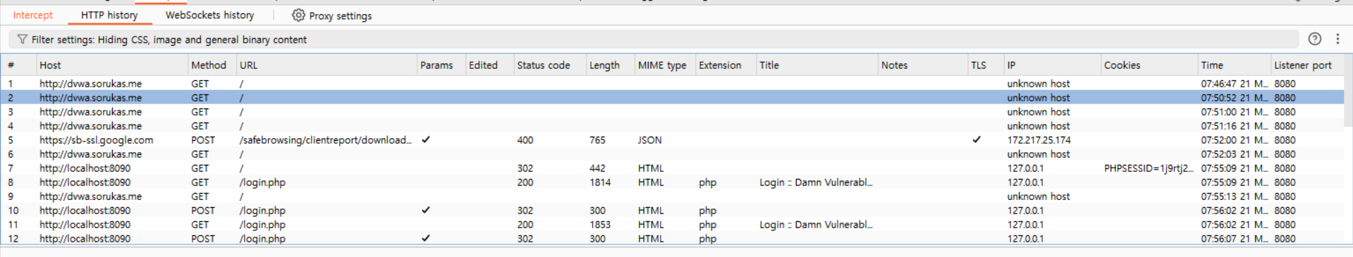 Proxy 탭에 들어가서 Open Browser를 클릭하고 http://dvwa.sorukas.me/에 들어가시면 되는데 안 되시면 localhost:8090에 들어가시면 됩니다.