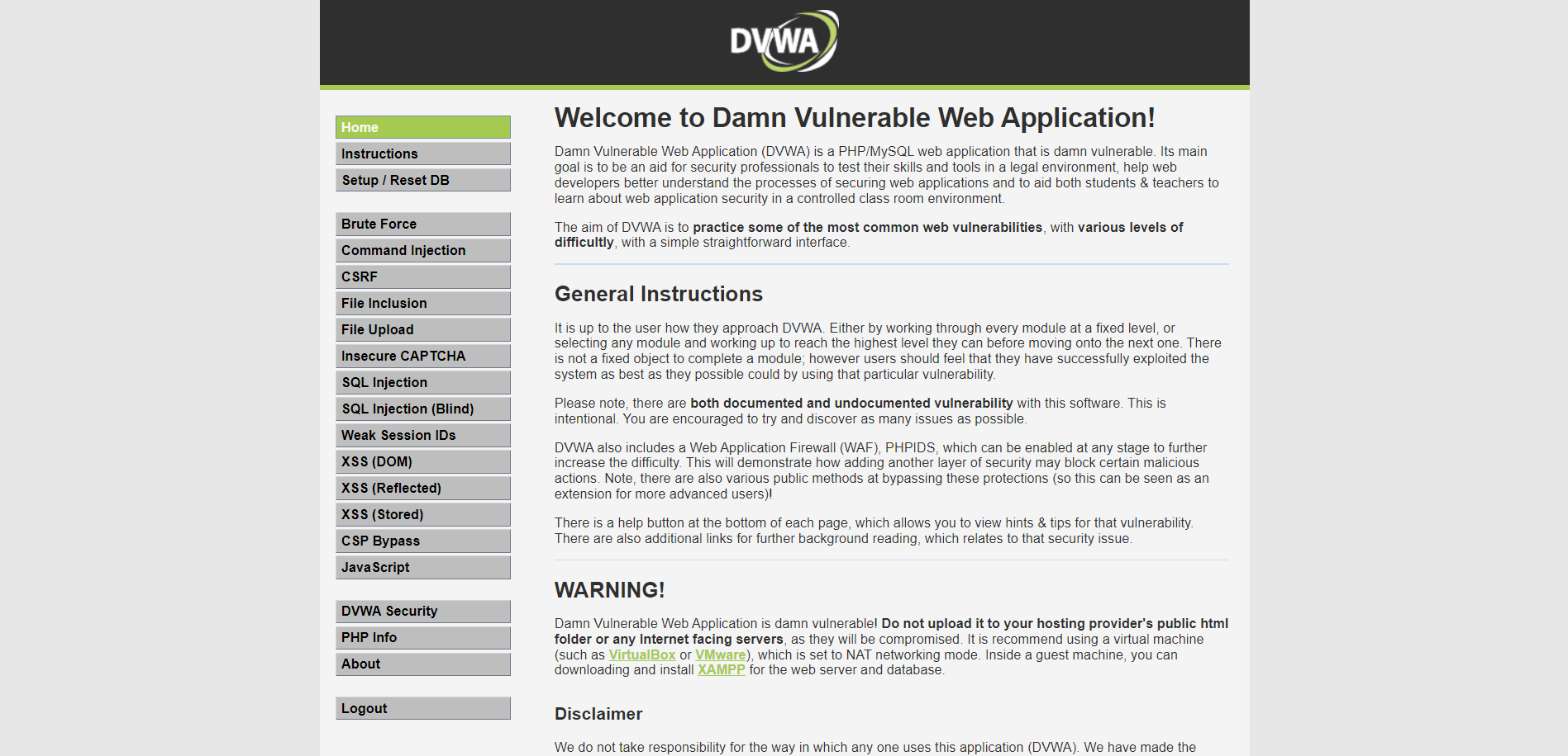 도커를 깔으시고 cmd 창에 docker run -d -p 8090:80 vulnerables/web-dvwa를 치시면 http://dvwa.sorukas.me/에 들어갈 수 있습니다.