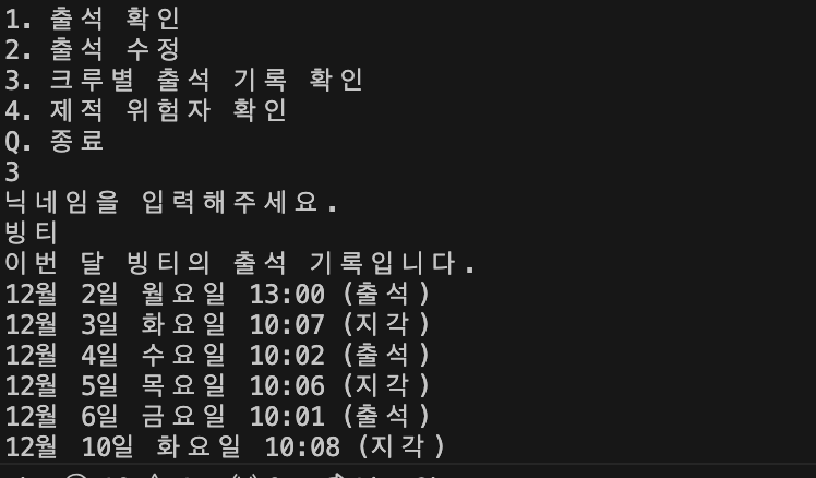 7기 최종 코딩테스트는 "출석부" 문제였다. csv로 작성된 출석 기록들을 데이터로 파싱해서 요구하는 출석부 기능을 구현하면 됐다.