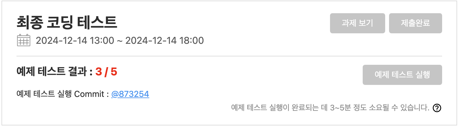 • 지난 기수 코테 문제들을 풀어보는 것보다 프리코스 과제들을 최종 코테와 같은 환경에서 완벽하게 풀어내는 것에 더 집중하는 게 좋은 것 같다. 지난 기수 코테 문제들은 완전 여유 남을 때 긴장풀 겸 가볍게 풀어보는 걸로 추천...!
