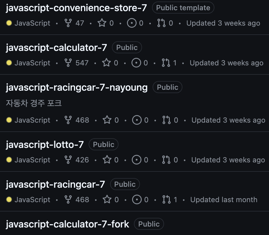 우선 스터디원 분과 함께 이번년도 7기 프리코스 1~4주차 과제를 다시 풀어보았다. 2주차 과제까지는 각자 코테 환경과 같이 gpt 없이 5시간을 재고 풀어서 깃허브에 공유하고 코드리뷰를 남기는 식으로 진행했다. 그리고 3~4주차는 페어 프로그래밍을 하며 같이 풀었는데 이 경험이 정말 도움이 많이 되었다. 페어 프로그래밍이라는 걸 처음해본 나는 너무 민폐만 끼칠까봐 걱정했는데, 음... 역시 내가 더 너무 많이 얻어갔던 스터디같지만... 스터디원 분이 감사하게도 정말 친절하게 이끌어주시고 가르쳐주셔서 많이 배울 수 있었던 좋은 경험이었다. 그리고 스터디원 분이 로직을 짜실 때 느꼈던 게, 나는 뭔가 한치 앞만 보며 우다다 구현하느라 뒤에 가서 꼬이는 경우가 많았는데, 스터디원 분은 기능 단위 구현을 할 때도 몇 수 앞을 보면서 로직을 짜셔서 신기했다. 그리고 메소드 체이닝도 잘 활용하셔서 간편하게 코드가 완성되는 것도 신기했다.