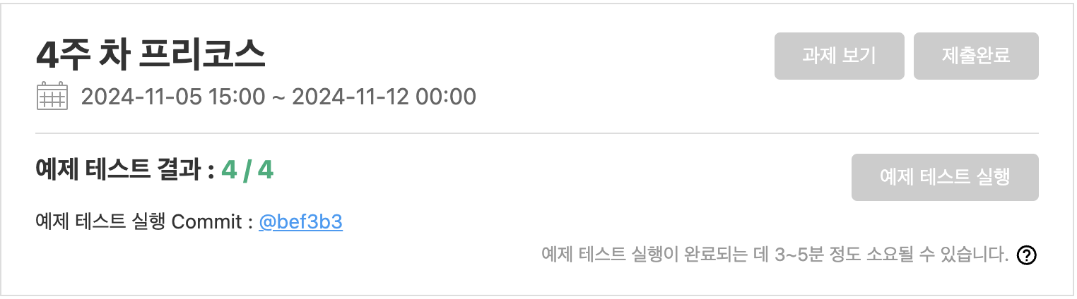 그나저나, 4주차 과제를 진행하는 1주일동안 새로 배웠던 것과 깨닫고 느낀 점이 너무 많았는데, 이것들을 이 포스팅에 글로 정리하려면 정말 오래 걸릴 것 같다...일단 아직 2주차 회고도 작성 중인 상태고 그 와중에 최종 코테 준비로 5시간 시간제한과 AI 사용제한을 두고 1주차부터 과제를 다시 풀어보고 있어서 이 것에 대한 회고 작성도 병행해야하므로... 과제사항만 일단 백업해두고 조금씩 글을 작성해나가야겠다.