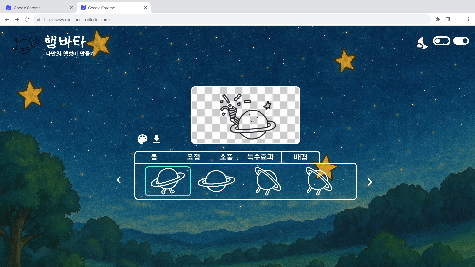 우테코 마스코트 캐릭터인 행성이를 꾸미고 png로 파일을 다운 받을 수 있는 사이트이다.